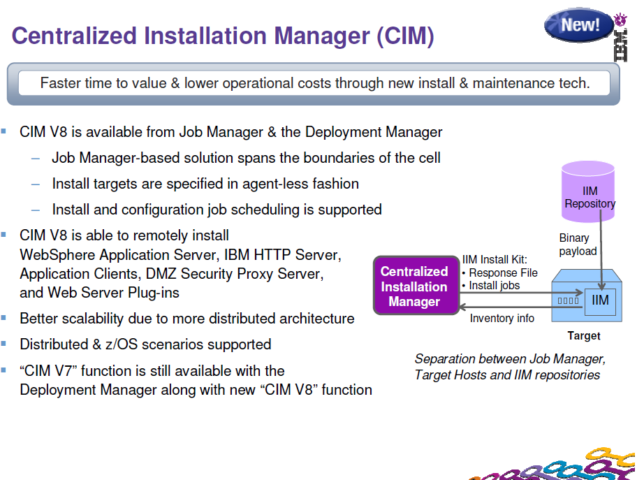 Para os desenvolvedores esta deve ser umas das melhores notícias. Agora, é possível utilizar o suporte a drag & drop para deploy de portlets da mesma forma como funciona no Jboss. Além disso, ao arrastar a app para o diretório de deploy, o start é feito de forma automática. As vesões são Base e DN incluindo para plataformas z/OS. Tipos suportados por drag & drop são EAR, WAR, JAR e SAR.